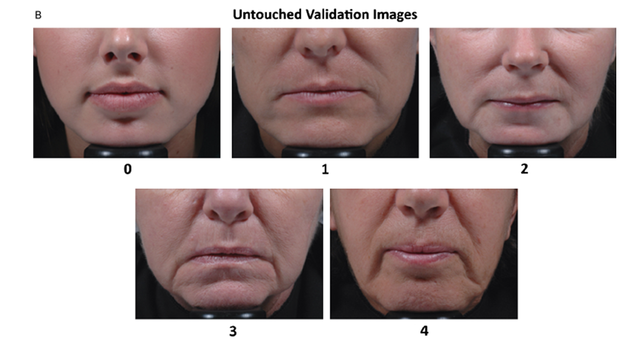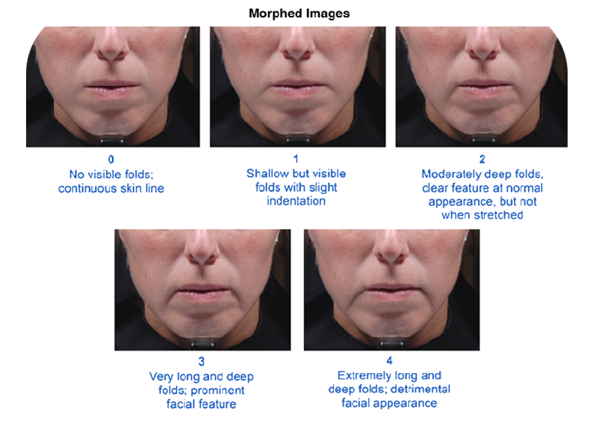 該五級圖譜評分量表覆蓋了患者常尋求矯正的木偶線嚴重程度。量表分層合理,可確保評分的一致性。