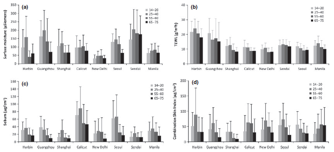- 皮脂與TEWL值下降:多項研究指出,從25-40歲開始,皮膚皮脂分泌和經(jīng)皮水分流失逐漸減少,尤其在中國與韓國女性中表現(xiàn)明顯[4]。