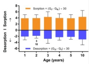 圖1 嬰幼兒皮膚水分吸附與解吸能力隨年齡的變化