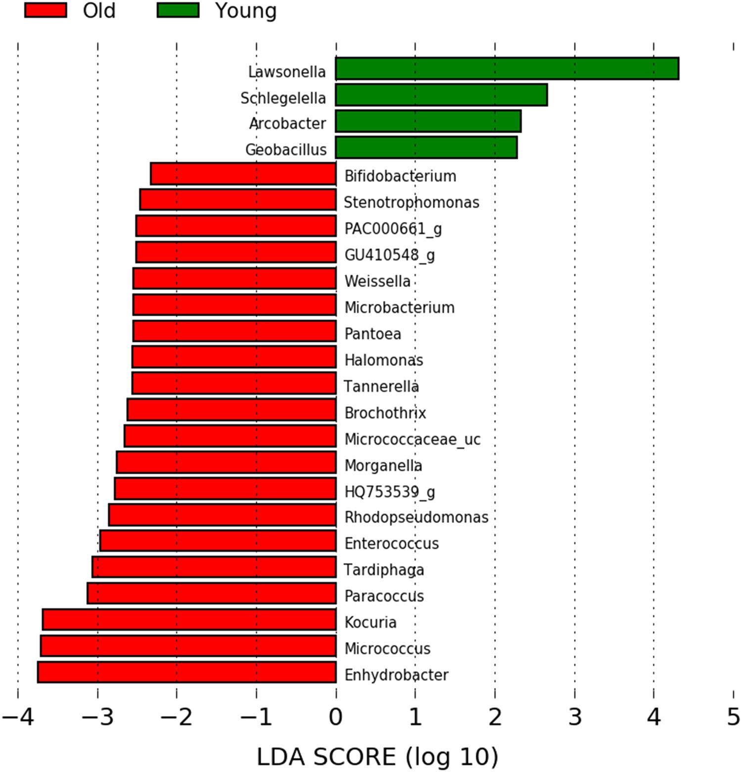 圖7 LEfSe分析結(jié)果顯示24個細(xì)菌分類群存在顯著差異