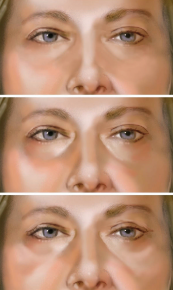 Ⅰ | 眶緣內(nèi)側(cè)可見輕微的凹陷或陰影,眶緣外側(cè)的瞼頰結(jié)合處輪廓平滑。 |