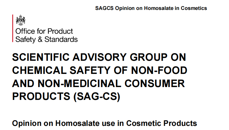 2025年5月,英國非食品與非醫(yī)藥消費(fèi)產(chǎn)品化學(xué)安全科學(xué)咨詢組(SAG-CS)發(fā)布了關(guān)于胡莫柳酯(Homosalate)的評估意見。